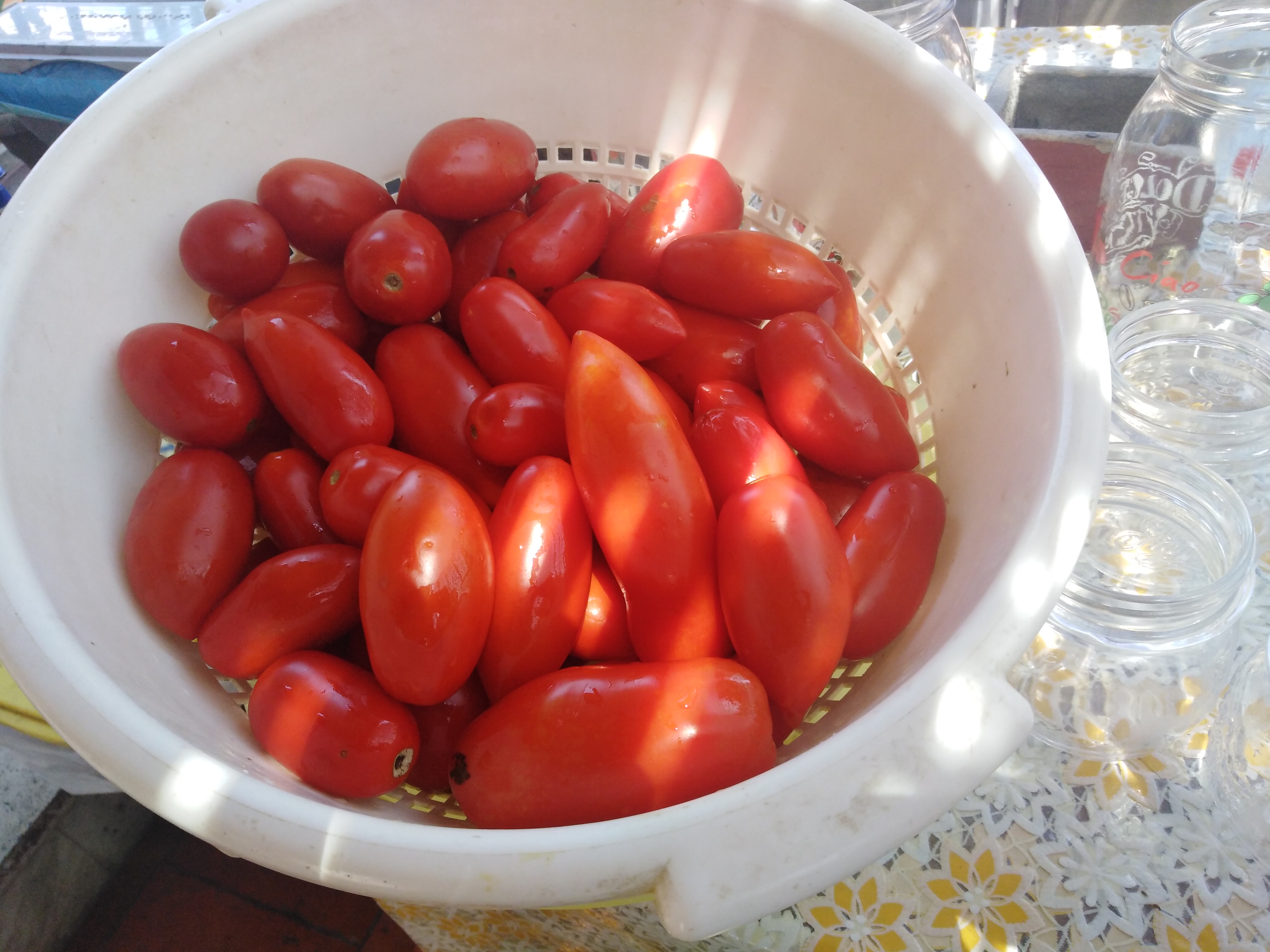 Tutto nasceva da da una materia prima stagionale di qualita’,presso il mio amico contadino o acquistato 2 kg di pomodori da salsa in questo caso unendo San marzano e datterino.. in Italia esistono piu’ di 20 qualita’ regionali di pomodoro da conserve,ognuna con un suo gusto e una sua particolarita’.