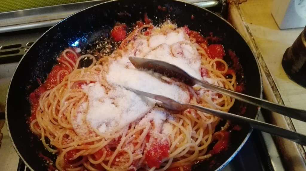 Poi mantecare a fuoco spento nel sugo con del pecorino grattuggiato.