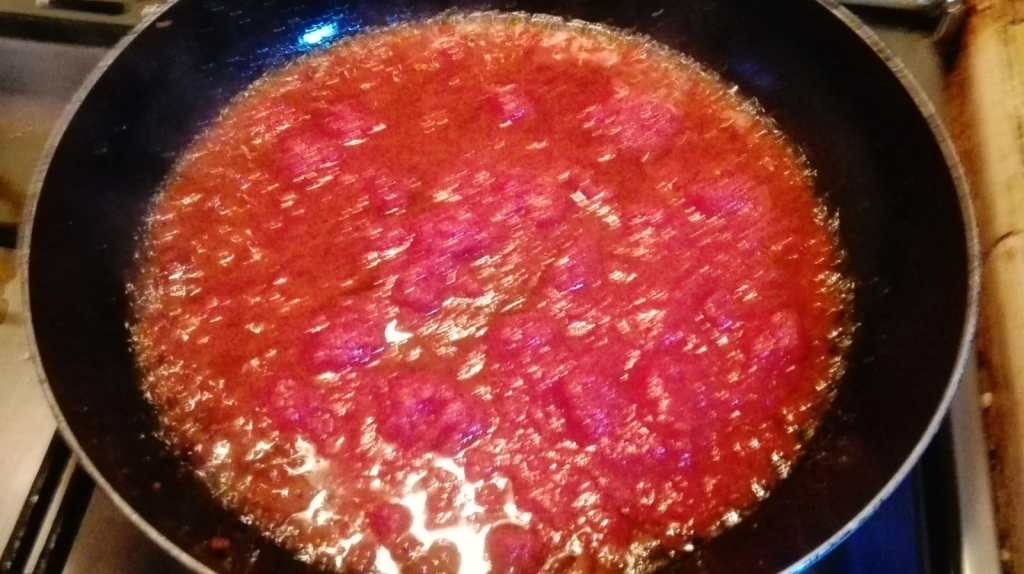 Aggiungere nel grasso la conserva e cuocere aggiustando di pepe Nero e sale.